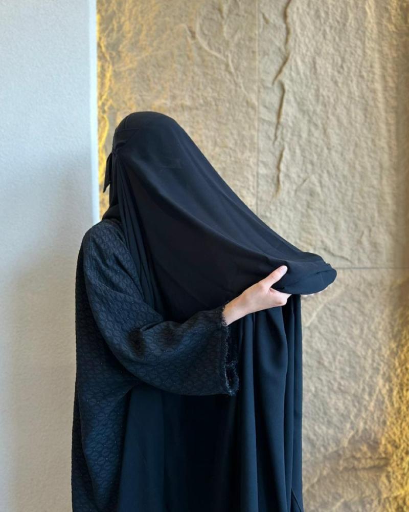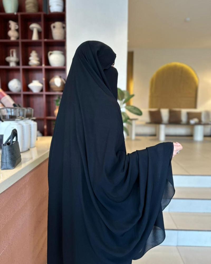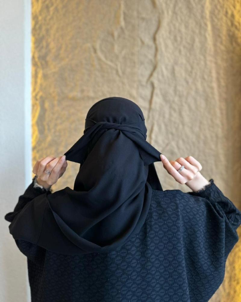 نقاب متصل بخمار طقطق بتصميم يجمع بين الحشمة والفخامة في قطعة واحدة عملية وسهلة الاستخدام.