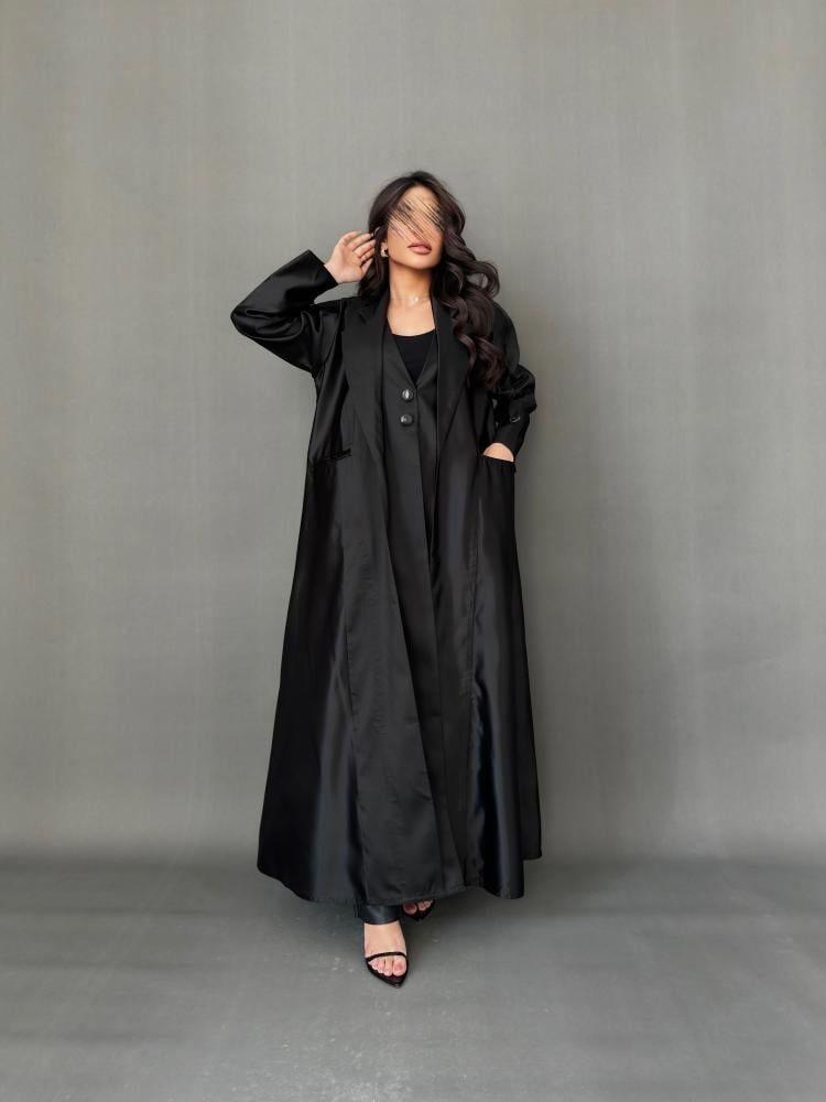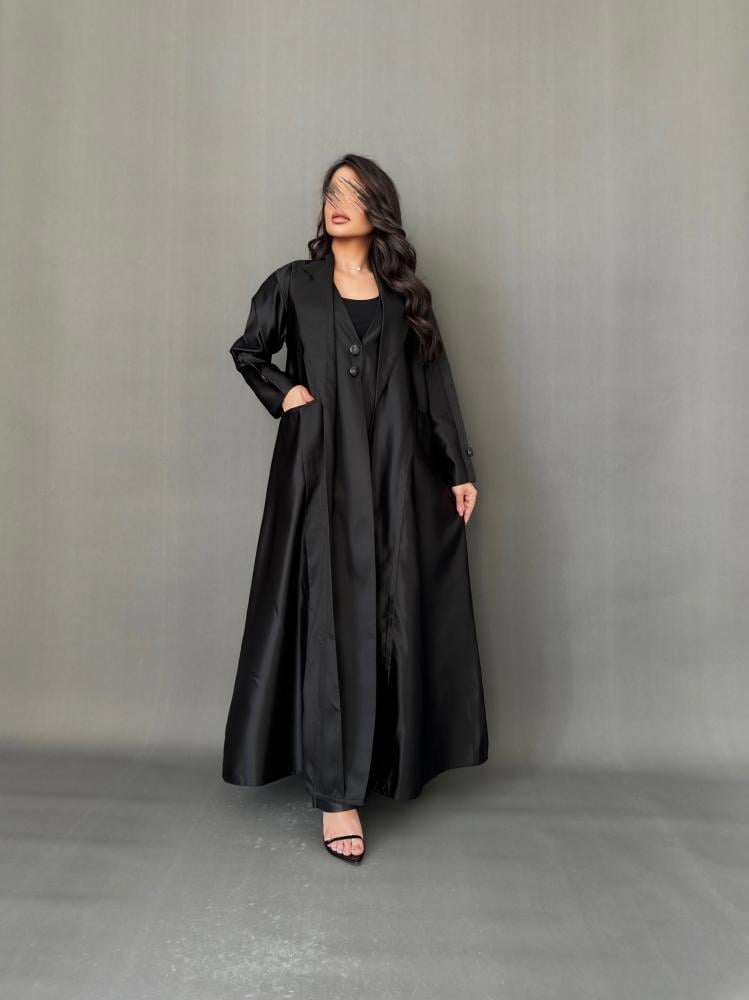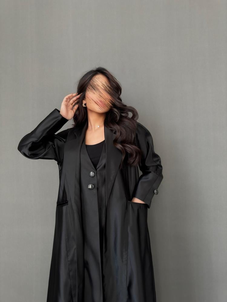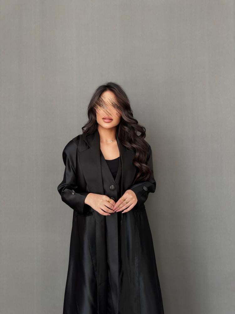 عباية سوداء رسمية مصنوعة من قماش التفته الفاخر بخامة ناعمة وخفيفة، تمنحك إطلالة عملية وأنيقة في الوقت نفسه. مزودة بجيوب أمامية عملية، مع قصة رسمية انسيابية وأكمام بسيطة بلمسات دقيقة تعكس الذوق الرفيع. تصميم مثالي للمناسبات الرسمية والاجتماعات المهمة 🖤